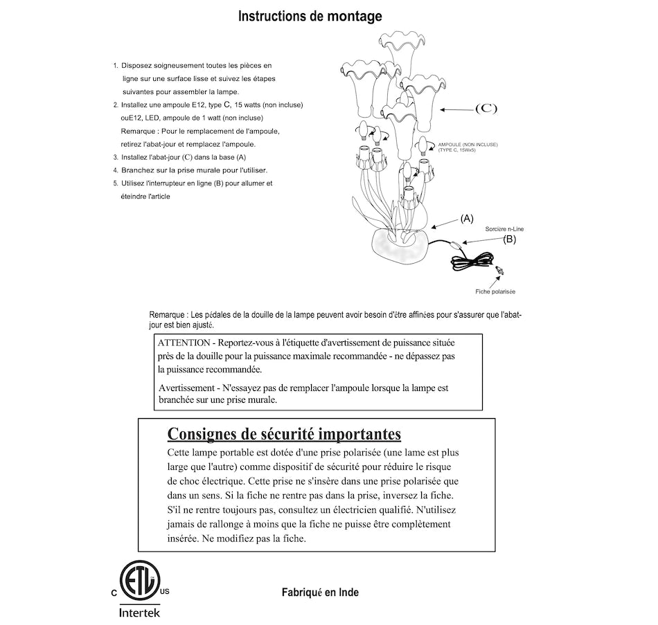 • Care instructions: please use Type C and 15 watt bulbs only. Use a soft cloth only, do not use any chemical or abrasive cleaners