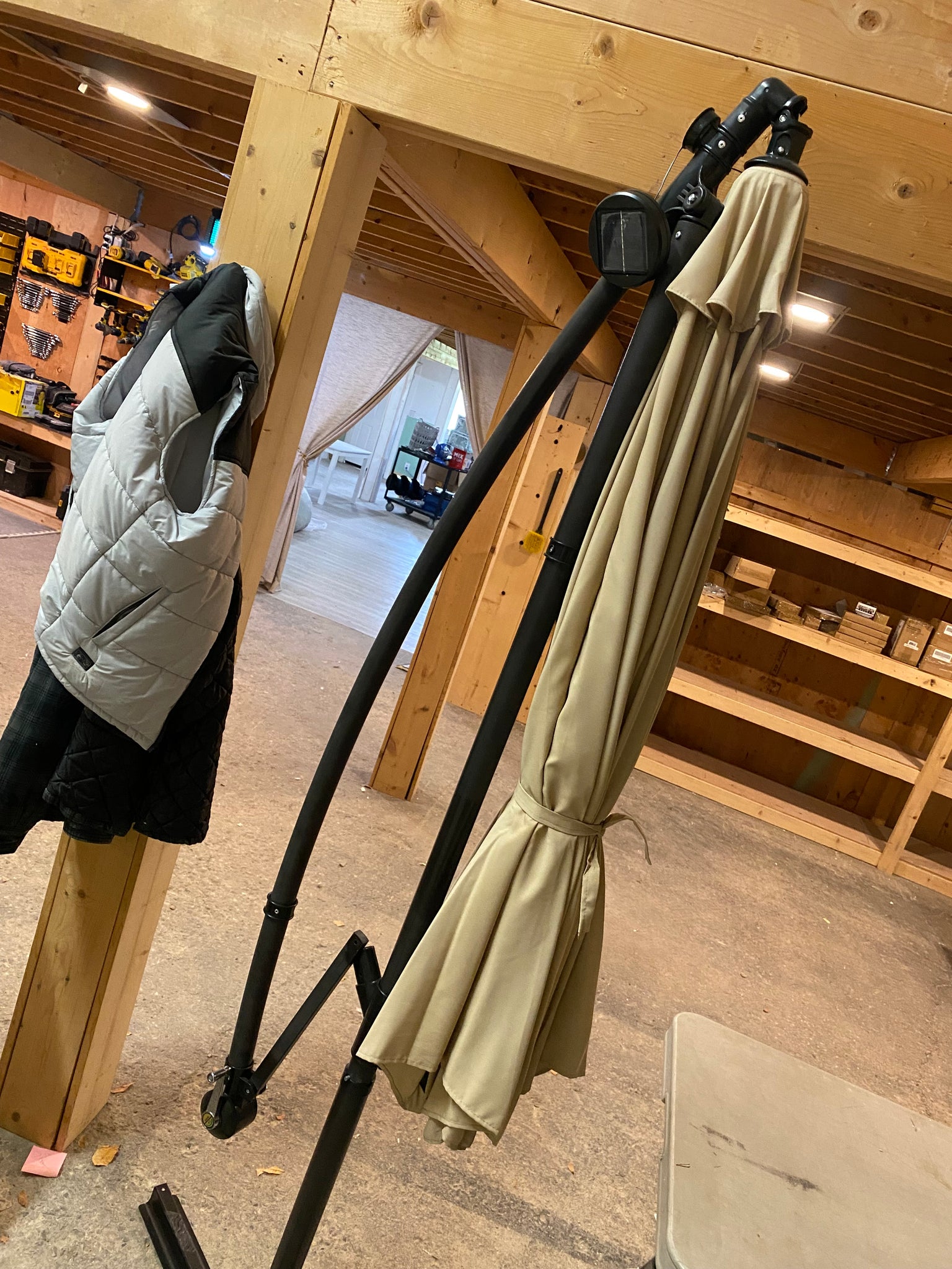 - You'll notice that there's a "little tent" vent at the top of the outdoor umbrella, which can dissipate the hot air that's trapped under it on a sweltering summer day, but also keep it steady and still when the wind blows