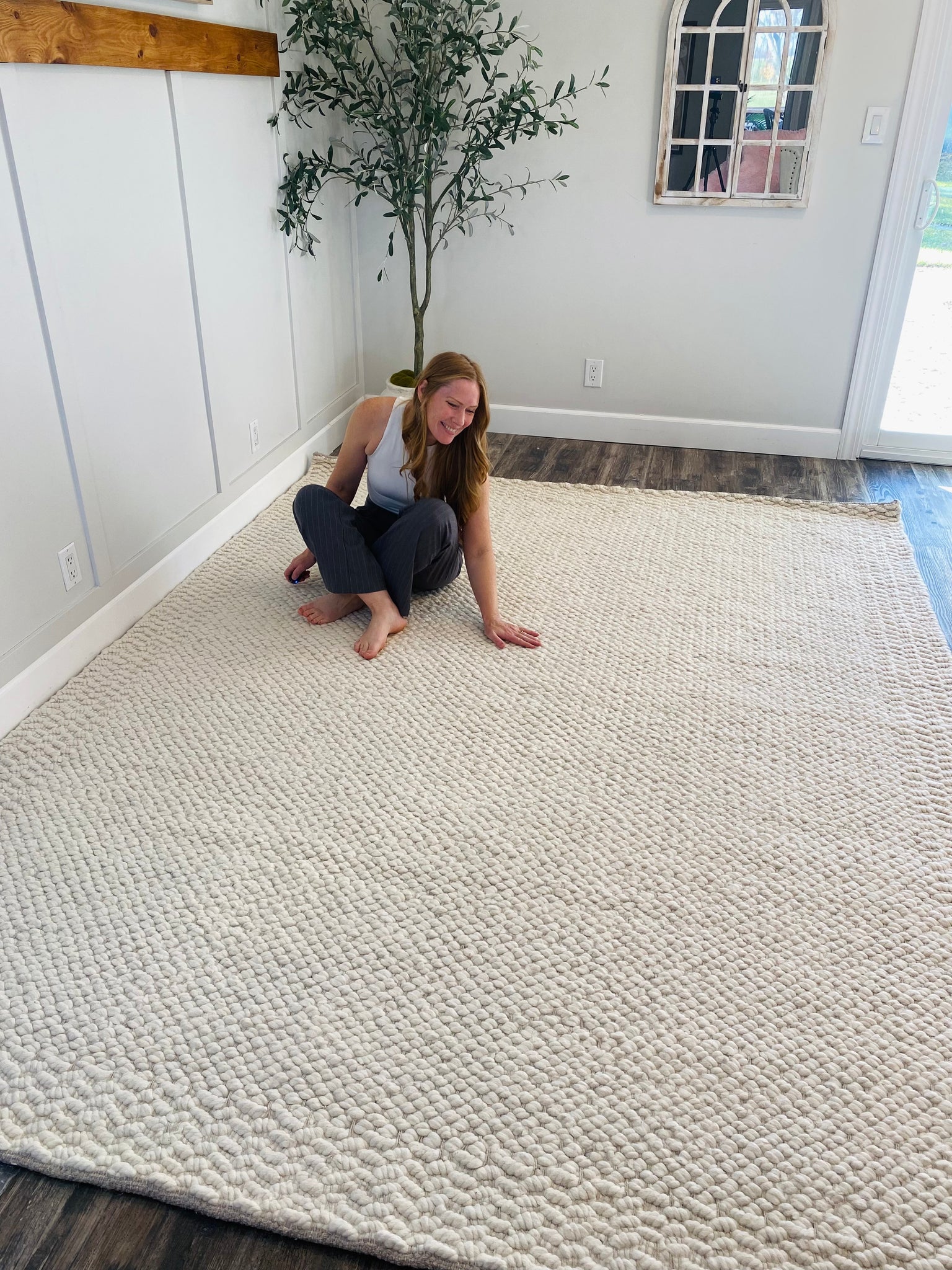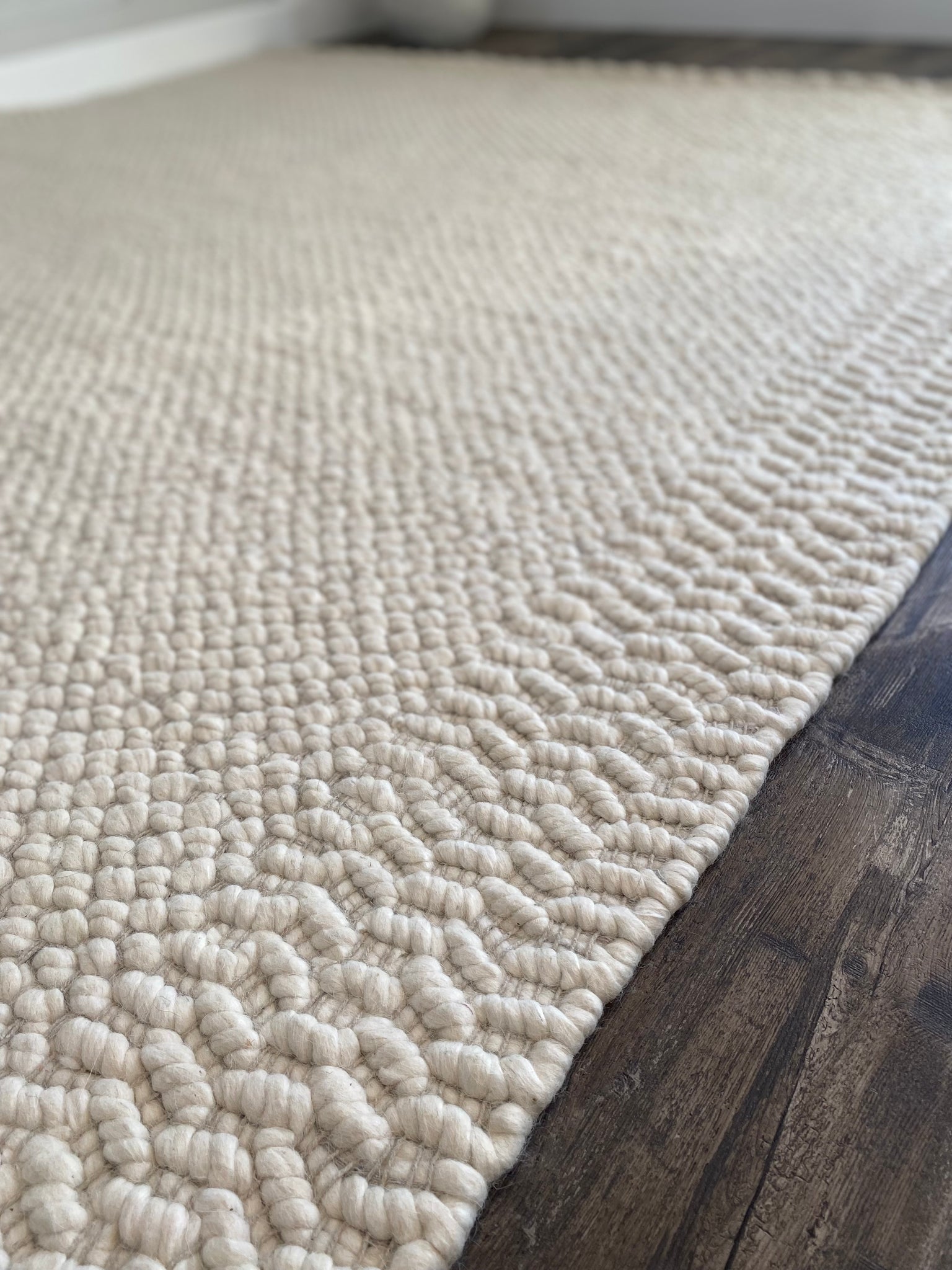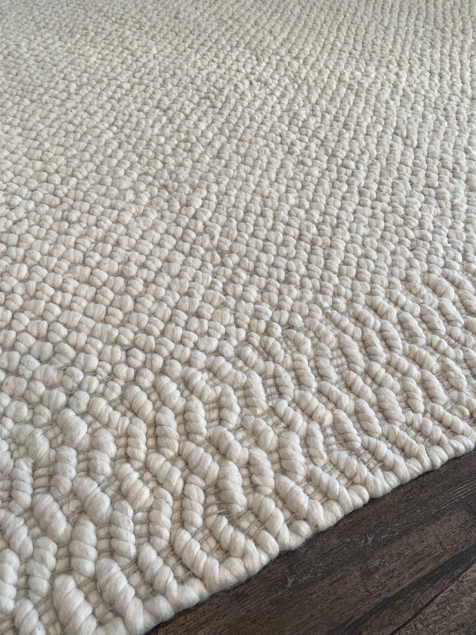 This modern area rug rolls out cozy comfort and contemporary style in your living space. Its textured and tufted design shows off a solid ivory hue that's easy to pair with colorful accents and neutral staples alike. Hand-loomed from a blend of wool and cotton, this rug's high 0.75'' pile is a great fit in low-traffic rooms like bedrooms and offices, where it adds generous warmth and underfoot cushioning. Plus, it's safe to place on heated floors. Add a rug pad underneath to secure it to your floor.