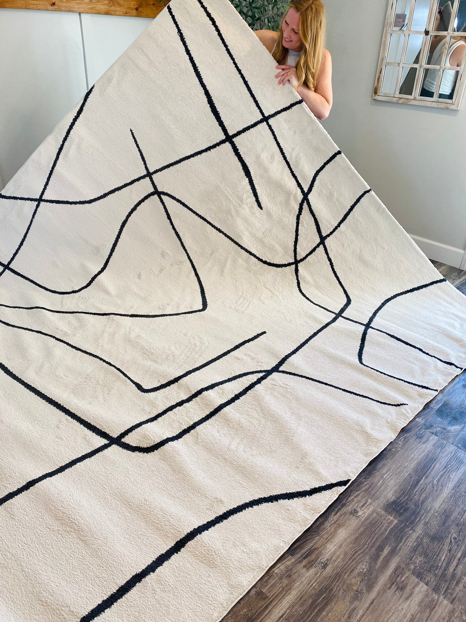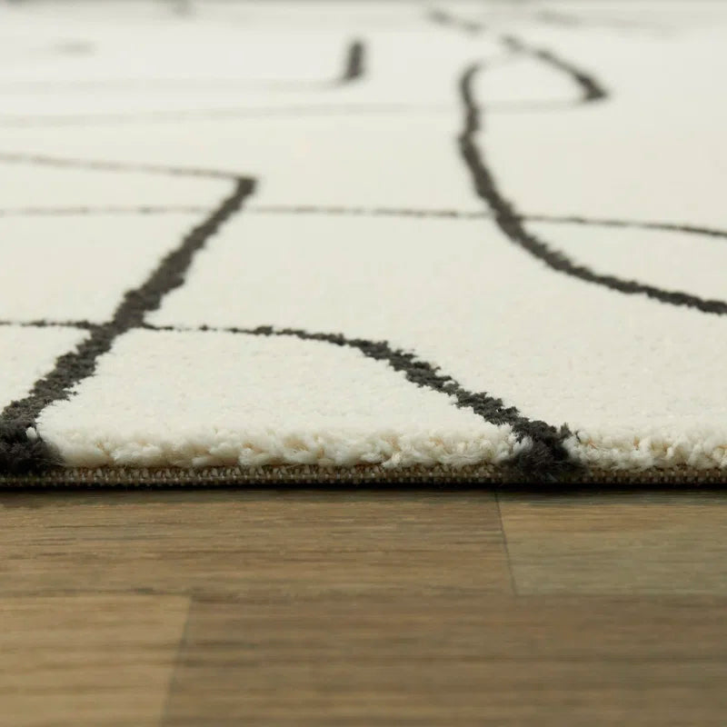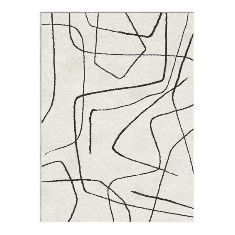 This modern area rug sets a neutral foundation in your space with minimalist appeal. Power-loomed from 100% polypropylene, this rug is constructed with a medium 0.45'' pile height that cushions and warms your floors in high-traffic rooms. Its pattern showcases an off-white all-over colour with thin curved lines of charcoal creating a dynamic and geometric design. We love that the pattern balances neutral colours with a graphic impact on your floor. Best of all, it's easy to clean – just spot-clean with detergent if you have any spills.