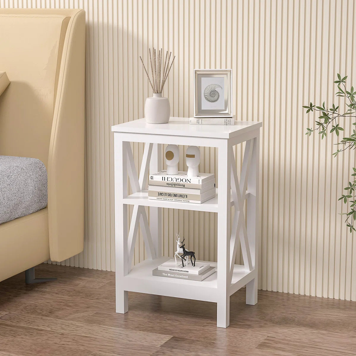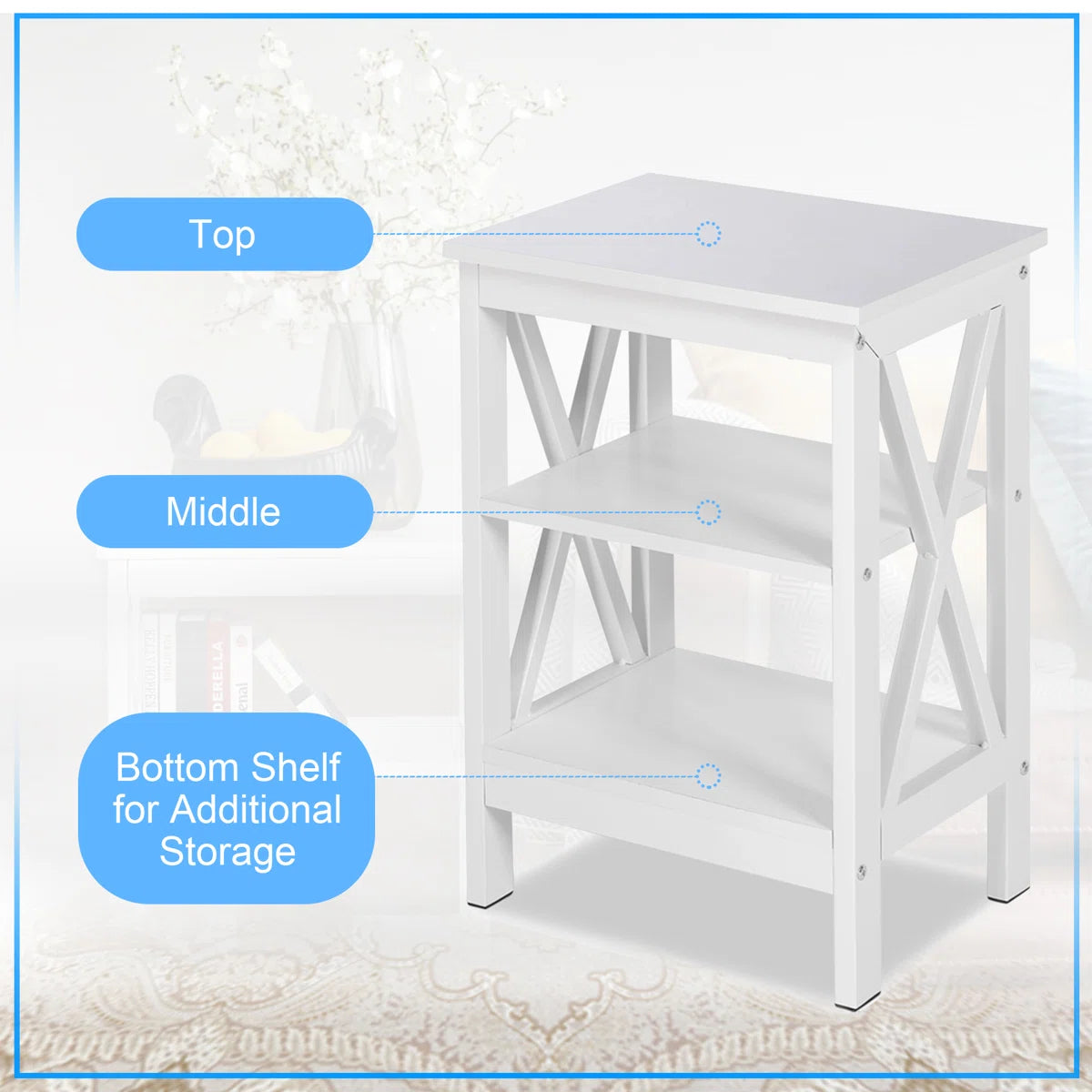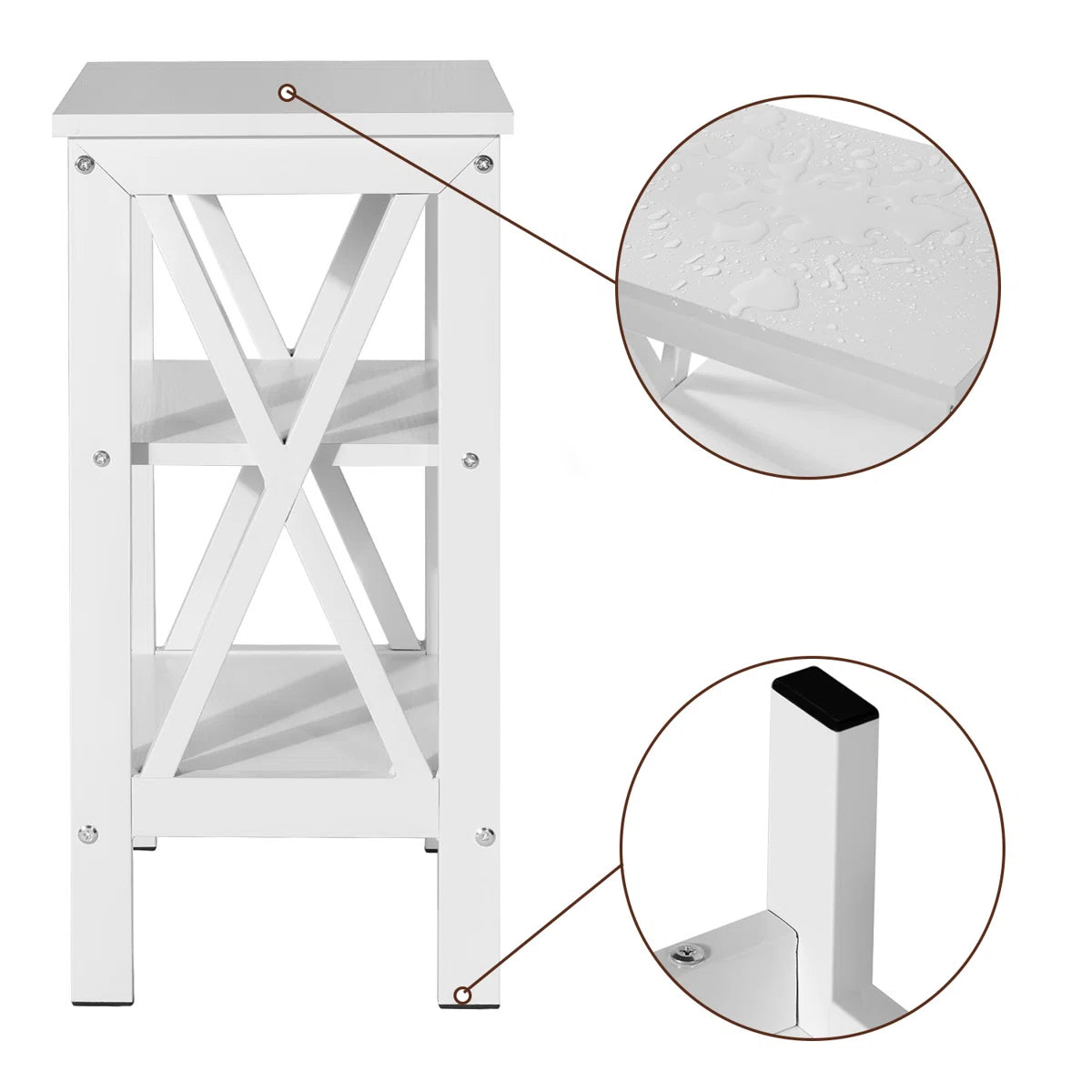 Bring streamlined style to your sofa’s side with this table. It's essential in any living room arrangement, end tables act as a perch for lamps, books, and other decorative accents. Crafted of durable manufactured wood and steel structure, this end table is stable and durable. The open shelves are great for stacking go-to books or issues of your favourite magazines, while its tabletop provides a perfect platform for a framed photo or a stylish lamp.