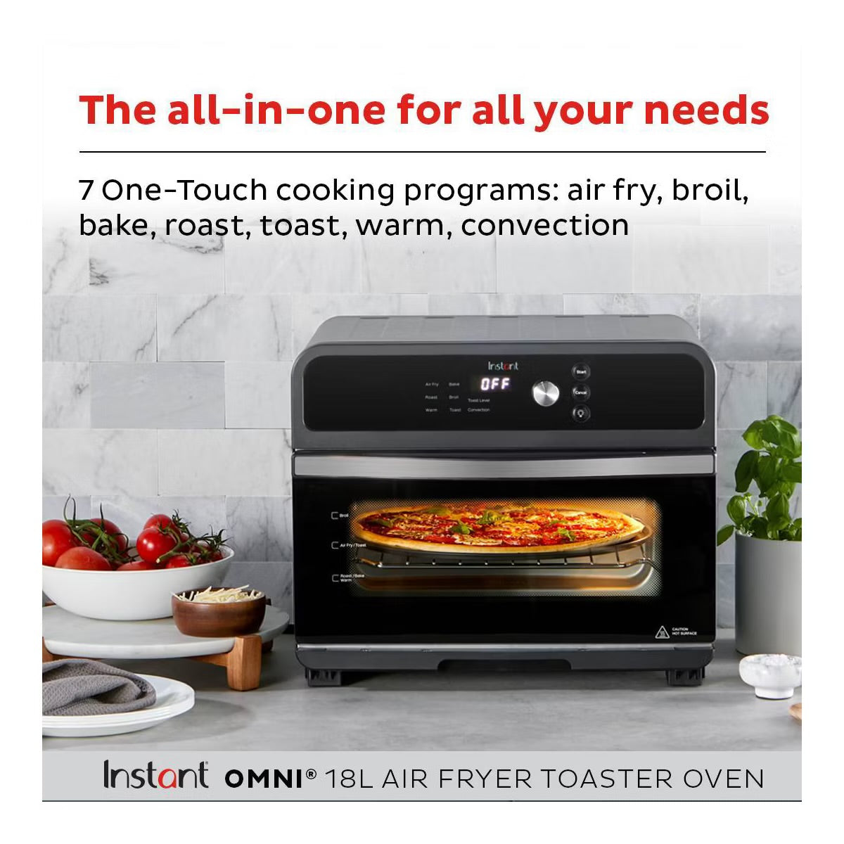 The Instant Pot® Omni® 6-Slice Air Fryer Toaster Oven is here to make mealtime easier, tastier, and just plain better. With 7 cooking functions, including toast, air fry, and broil, it handles everything from golden breakfast bagels to crispy, juicy chicken wings. Thanks to EvenCrisp™ Technology, hot air circulates top-down for that perfect crunch every time. No need to shuffle between appliances—Omni does it all, right from your countertop.