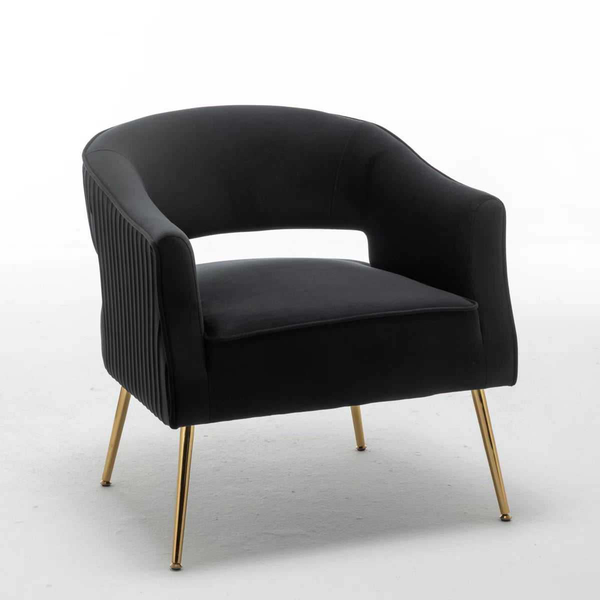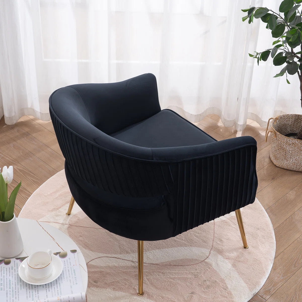 Chynna Velvet Armchair, Black with Gold Legs
