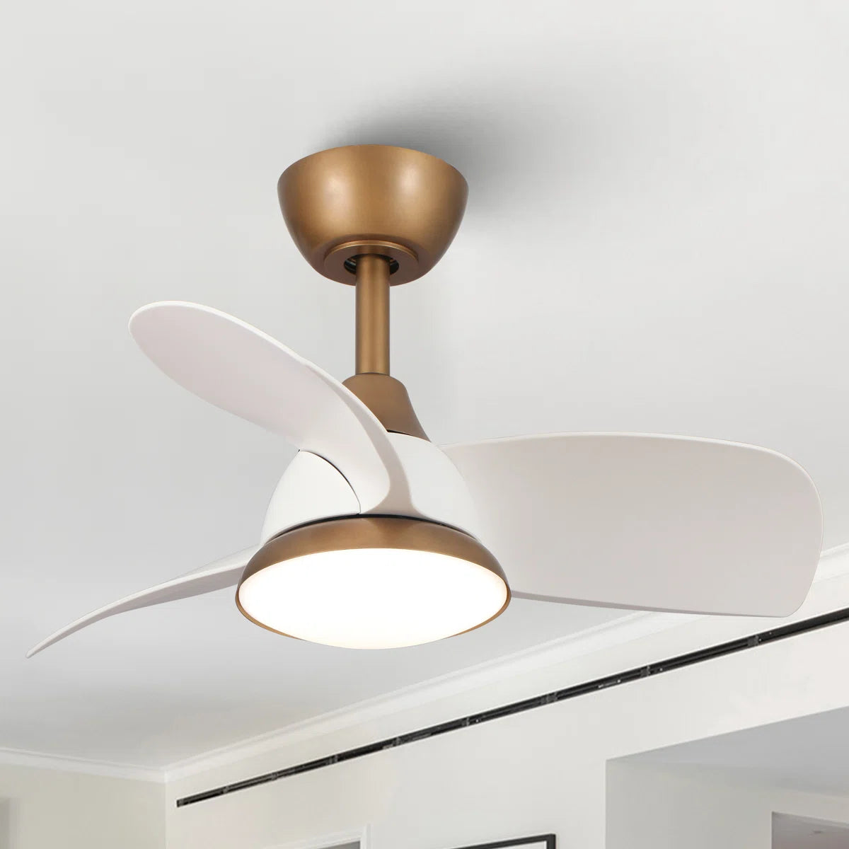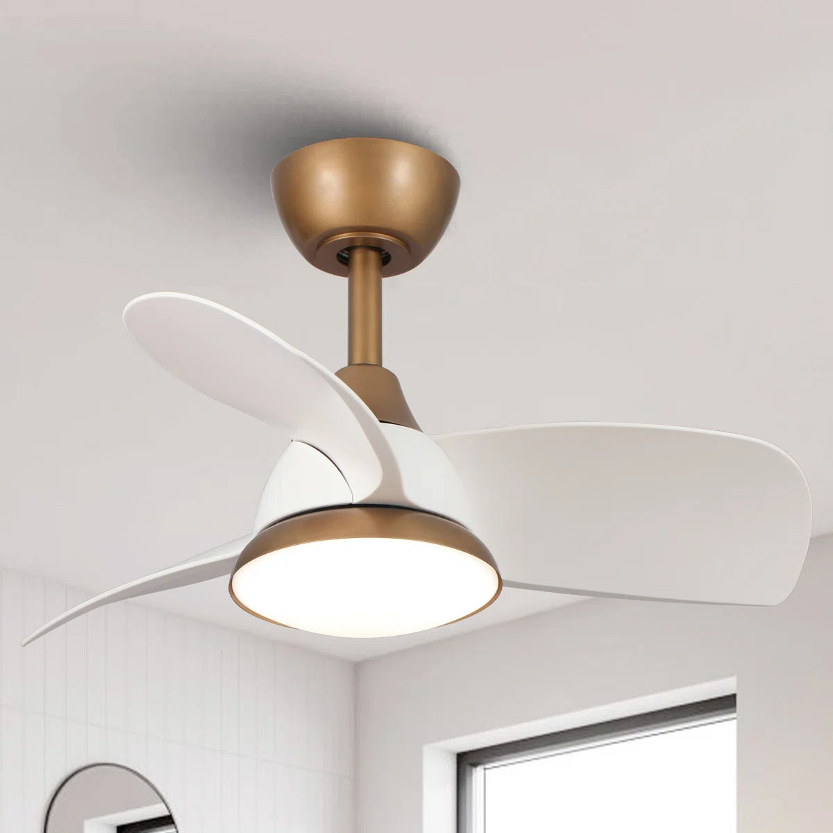 Ceiling Fan with LED Lights: Diameter 28 in. The brushed gold motor and 3 sturdy ABS blades add more modernity to the space, high light-transmitting acrylic shade with 18W LED panel light inside softens radiations and delivers flicker-free lights. At the same time, you can also select from 3 color temperatures: 3000K, 4000K, and 6000K. Suitable for living room, bedroom, office, study, kitchen, corridor, or other indoor use.