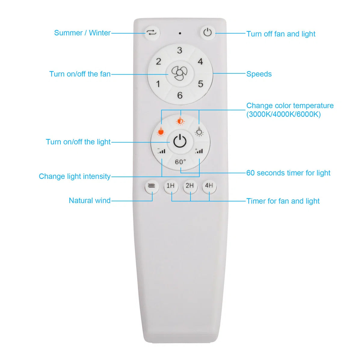 Multifunctional Silent Ceiling Fans with Remote Control - All operations can be controlled by the remote controller, adjust the fan speed with 6 levels, select light color temperature, and support timing (1/2/4 hour) sleep shutdown, on/off. The fan and light can be turned on separately.