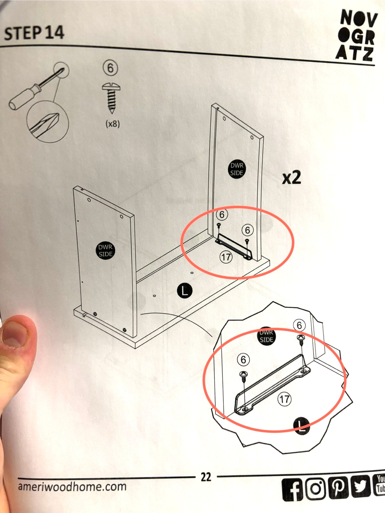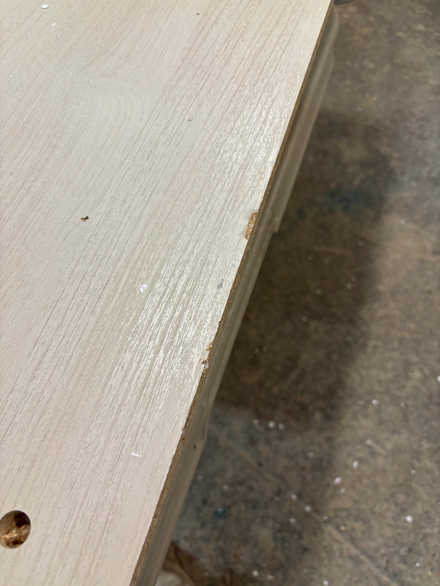 **A few small dings throughout, ALSO the back bracket hardware(2 brackets missing) for ONE drawer is missing - could be assembled with L BRACKETS instead(can be purchased at a hardware store) or Item can be assembled with only one drawer, price reflects this. SEE PICTURES PROVIDED.