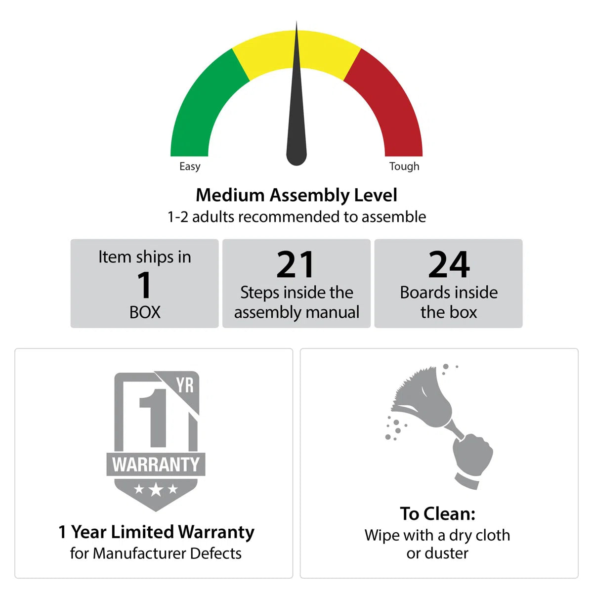 Take organization to the next level with the kelly closet organizer. Perfect for small living spaces like a condo or anairbnb, kelly features 3 adjustable clothing rods that allow you to neatly hang blouses, sweaters, slacks, or skirts and 2 lower drawers that provide ample space for additional undergarments, ties, jewellery, or seasonal items like scarves and hats. The upper and lower half of the closet organizer consists of 5 open shelves (3 adjustable shelves and 2 fixed) perfect for your handbags, shoes, and everyday go-to items. This closet organizer has everything you need in one convenient system to fit most bedroom closets. Each clothing rod adjusts from 21” to 36” for a tight fit from wall to wall and the included wall anchor kit provides extra stability for your items. Finished in a laminated neutral woodgrain pattern, this particleboard and metal tube closet unit measures 19.69 in. W (with rods: 61.69" W to 91.69" W) x 15.67 in. D x 76.85 in. H. The lower clothing rod can be used on either the right or left side of the centre tower. Two adults are recommended for the proper assembly and installation of this closet organizer.
