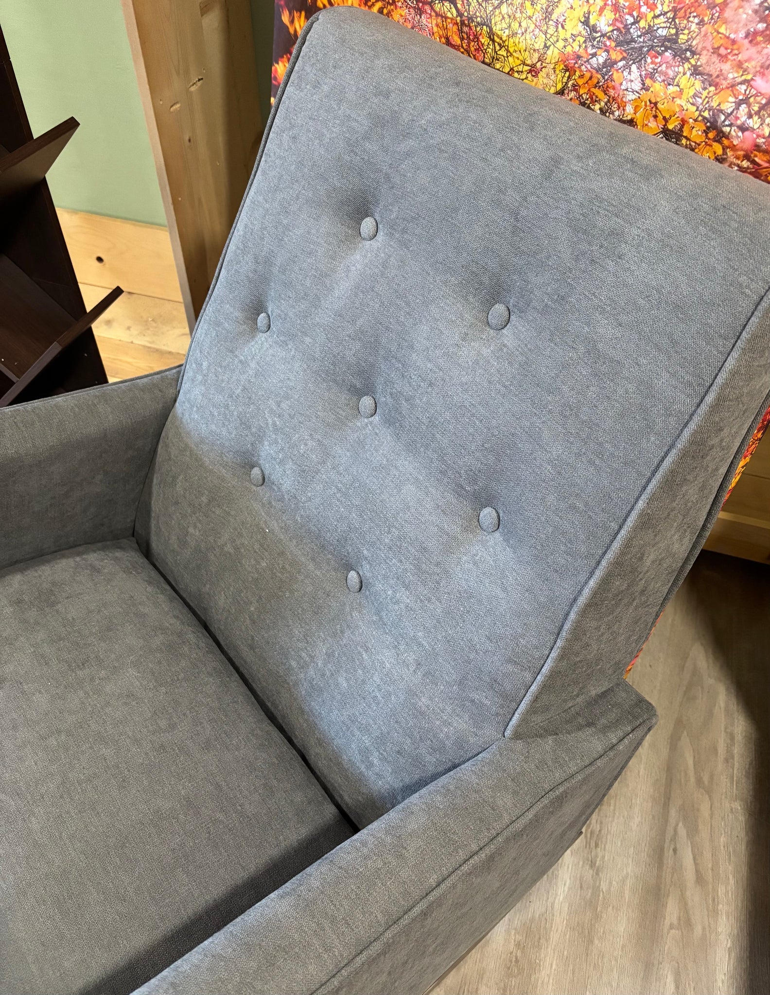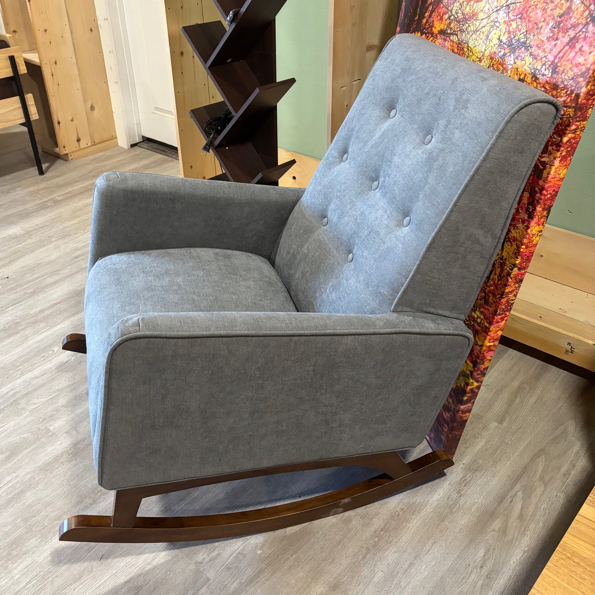 This rocking chair gives you a spot to lean back and relax or help rock your little one to sleep. It's made of solid eucalyptus wood, and it rests on two walnut-finished rockers. Plus, it has a sleek, modern silhouette with square arms and a tufted back. Made from high-quality twill fabric, this chair comes in a solid hue of your choice to match almost any style or colour palette. The seat and back are filled with foam to provide ample support. We love that the rockers are removable, so it's super-easy to fit through thinner doorways.