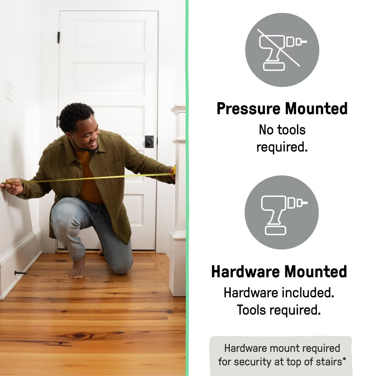 Fits in doorways or hallways with easy no-drill pressure mount system