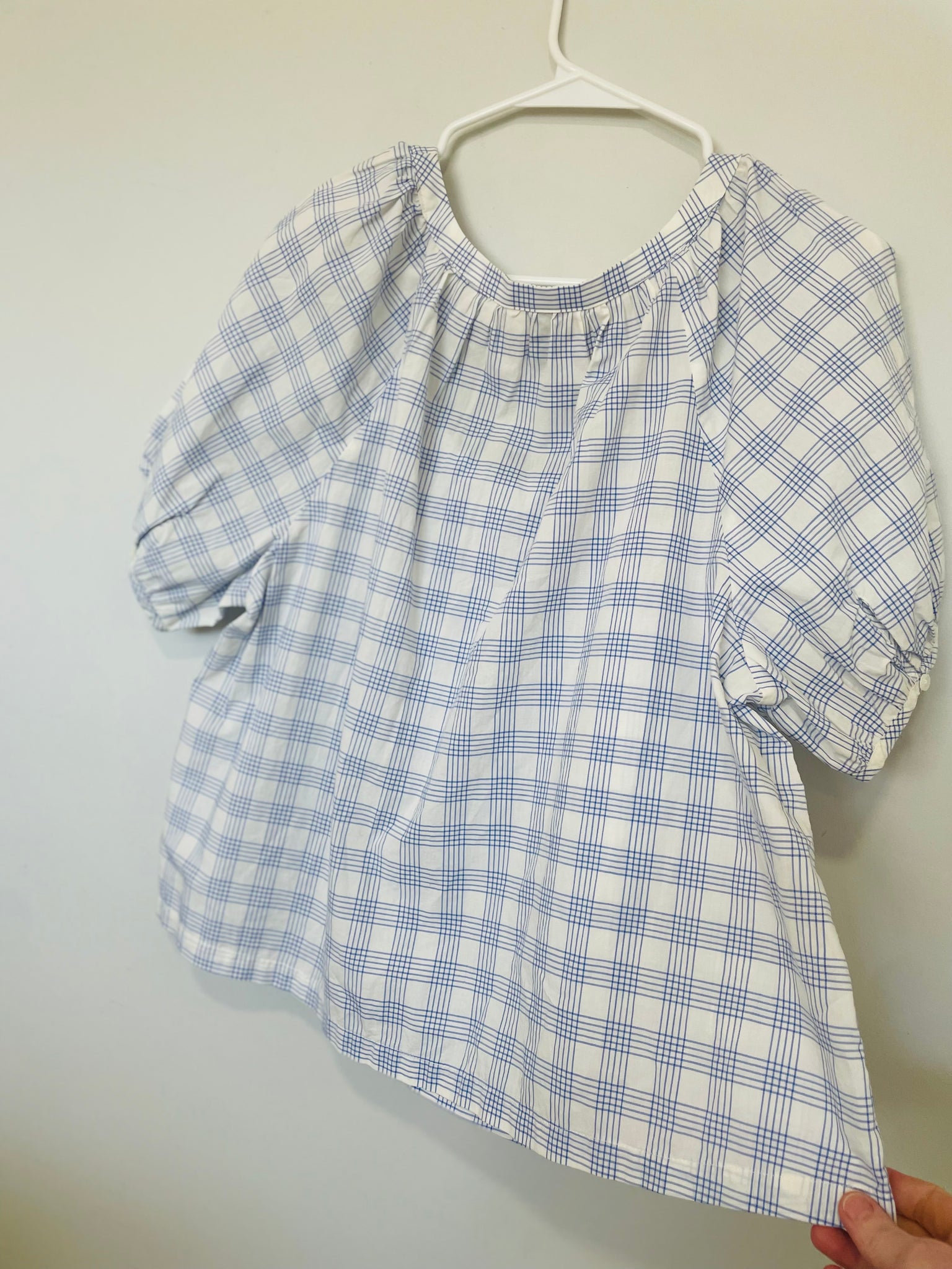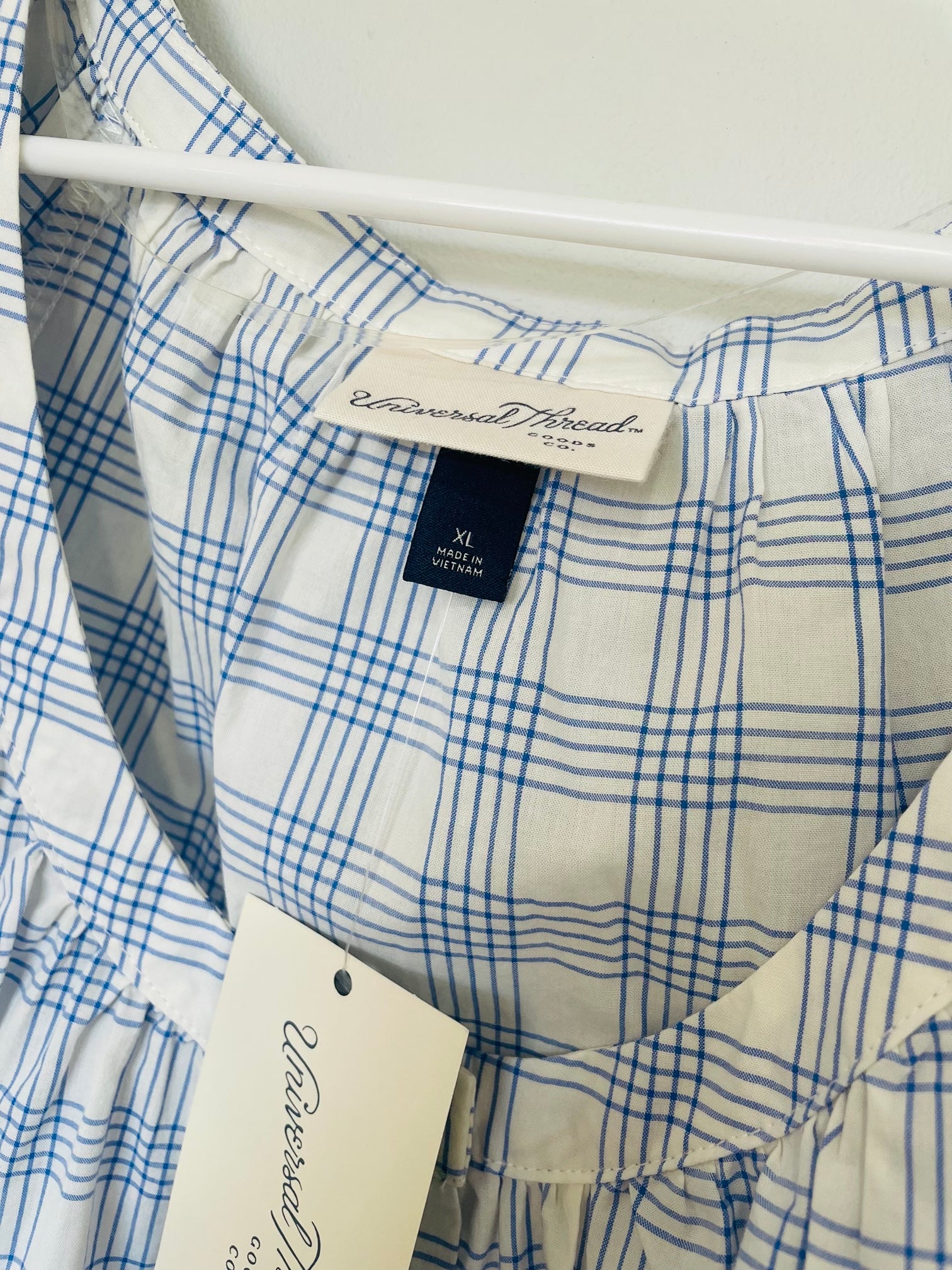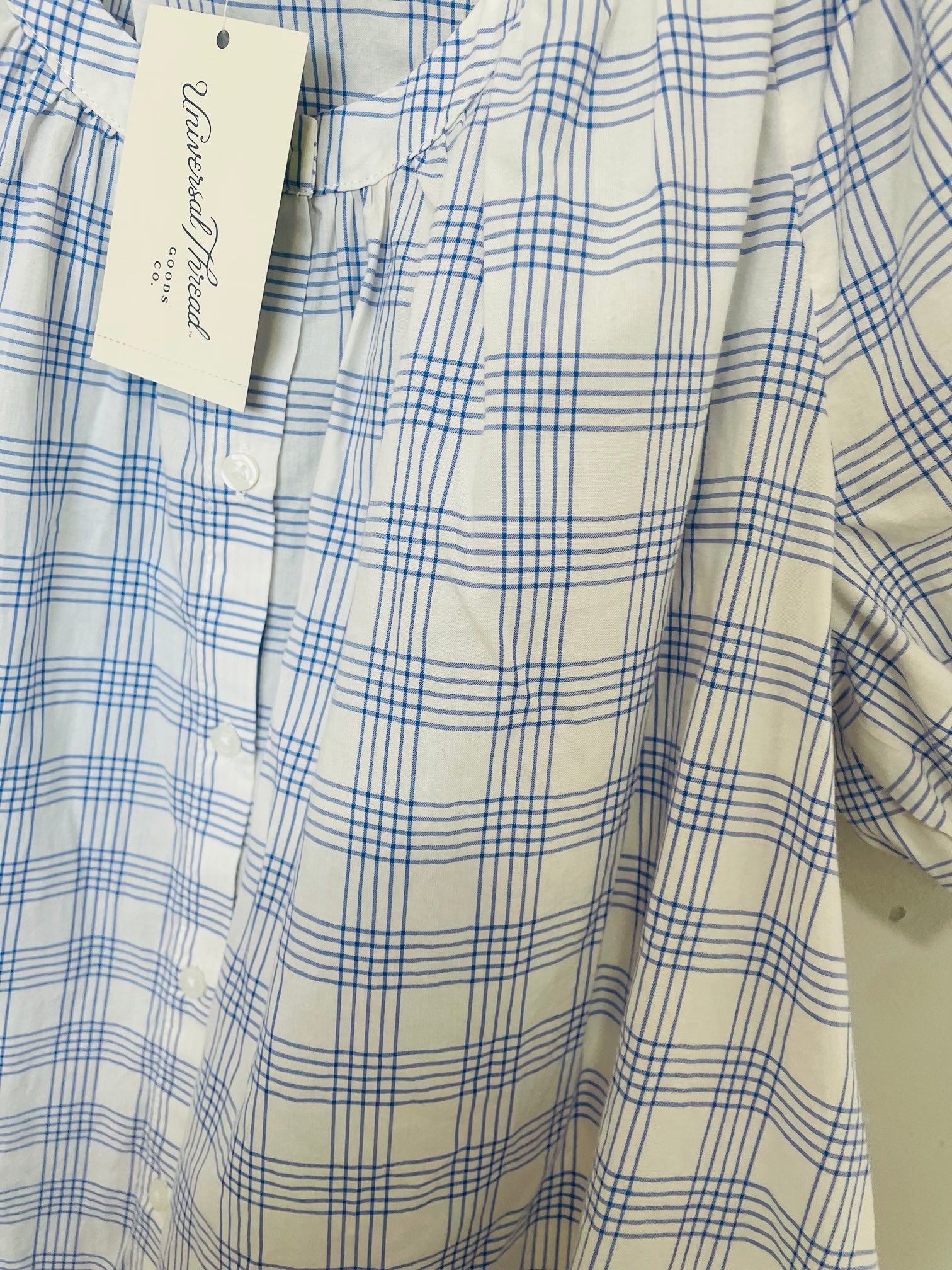 Extra largeblue and white gingham pattern with button front