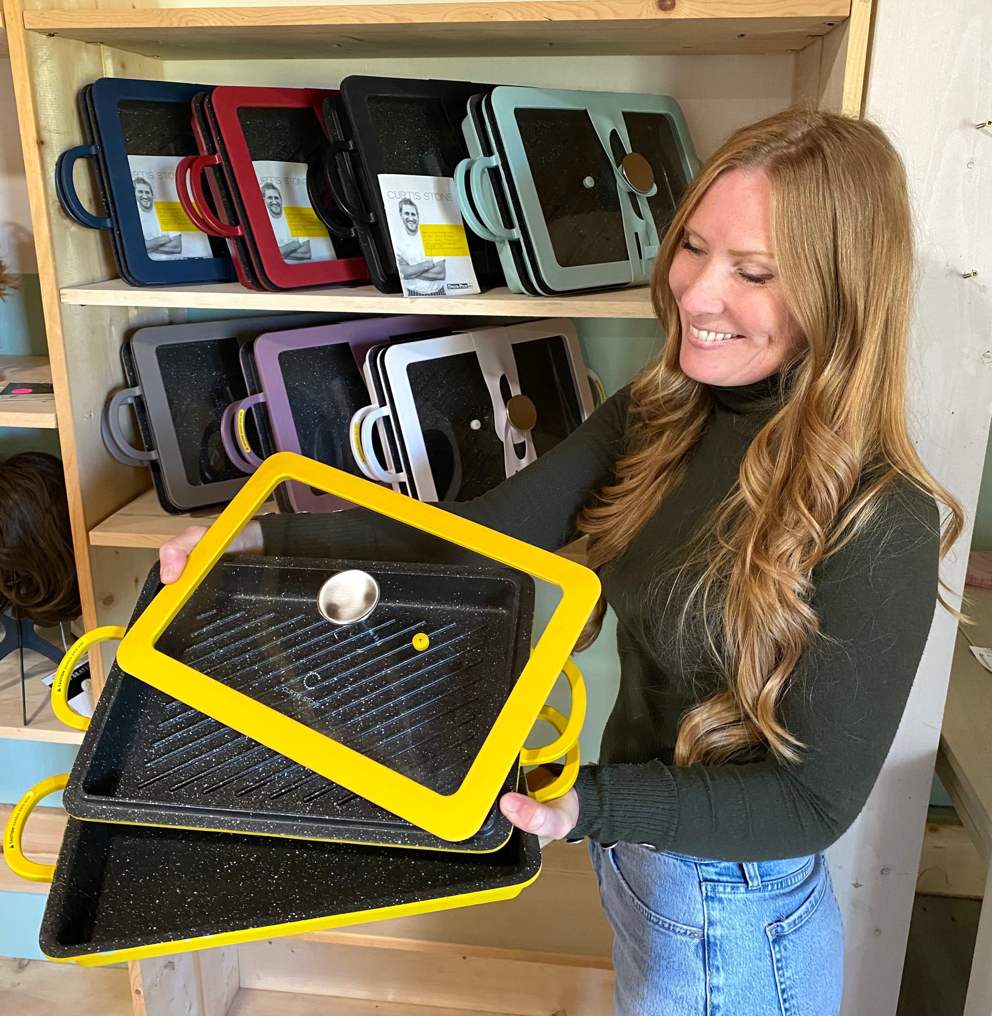 Add a multitude of delicious possibilities to your kitchen with this baker griddle and grill set from Curtis Stone. It's crafted from cast aluminum with stainless steel rectangular base which provides even heating across all pan surfaces, and the specially formulated five-layer diamond non-stick coating adds strength and durability. The tempered glass lid has a silicone rim and allows you to keep an eye on your food without losing moisture, and the silicone pot lid holder lets you cook at home and carry to your next party with ease. The pan is also oven safe up to 450°F (the lid up to 400°F), safe for use with metal utensils, and works with all stovetops, including induction. Easy to use and maintain, this baker griddle and grill is a great addition for both beginners and culinary experts alike, and it's available at a great value through TSC!