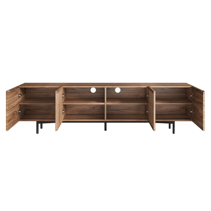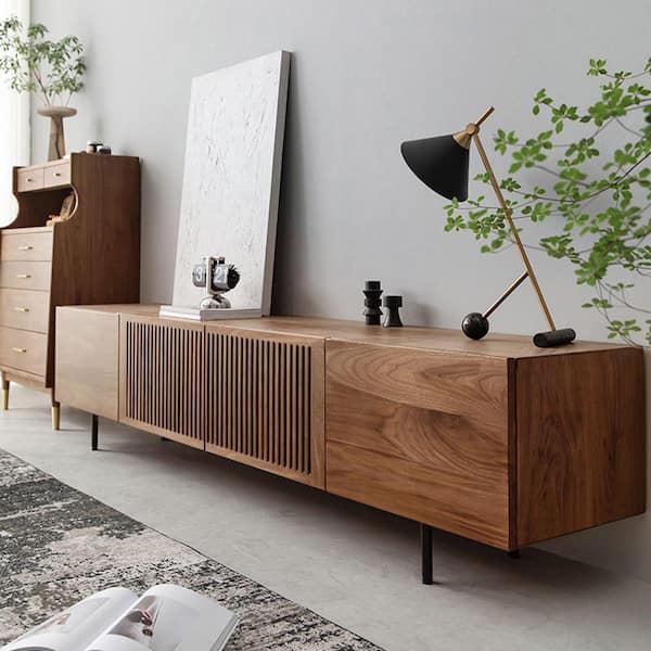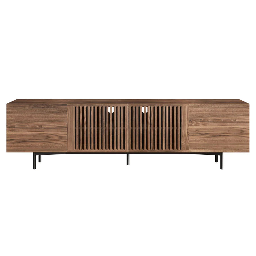 Equipped with four solid wood doors, this console provides six storage compartments, ideal for keeping your TV accessories, gaming consoles, and other devices neatly organized. The slatted door design allows for ventilation while maintaining a clean appearance, blending form and function perfectly.