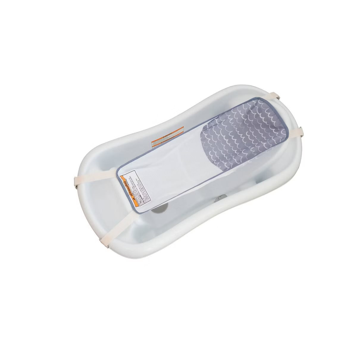 The Sure Comfort® Newborn to Toddler Tub with Infant Sling grows with your child through three stages. The included mesh sling cradles newborns to provide them with extra comfort and support while bathing. The added security of the form-fitting netting helps make bath time less stressful for both new parents and their newborn. This 3-in-1 tub also features a deep ergonomic design that holds a growing baby better during bath time. Removing the sling gives you a baby tub with a comfortable recline and padded headrest. The specially designed bump built into the baby side of the tub will help keep that tiny bum from sliding down. Later, active toddlers can sit up comfortably and have room to play on the toddler side. The Sure Comfort’s grow-with-baby design ensures you’ll be able to use this baby bathtub from infant through to toddler!