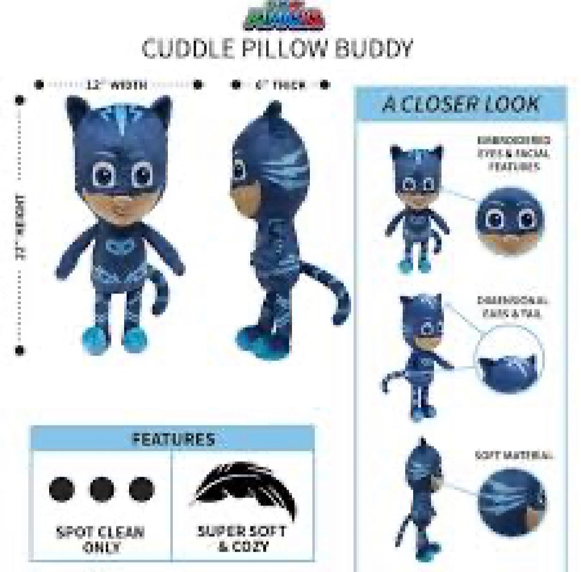 Make a cuddly new friend with this super soft and plush PJ Masks Catboy cuddle pillow buddy. Young fans will love playing and relaxing with this pillow while imagining fun and adventure. For bedtime or playtime, this three dimensional pillow helps bring their favorite character to life. The high-quality microfiber plush material is soft and snuggly while the polyester fill provides plenty of cushioning. Fans will love how the vivid colors and dimensional and embroidered detailing of this plush animated character. Kids will love cuddling up with their favorite character at naptime, bedtime, or any time they want to feel cozy.