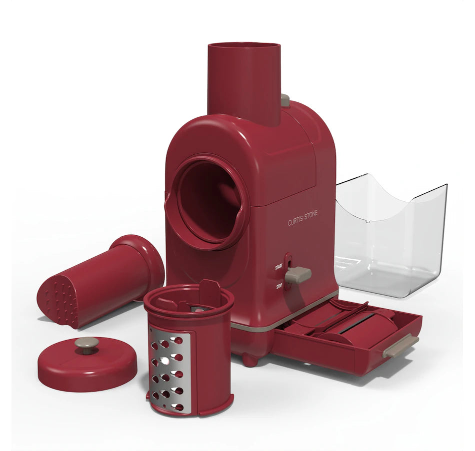 The new Curtis Stone Electric Prep Master makes prepping food fast and convenient. It comes with four interchangeable stainless steel blades that are easy to attach and will enable you to effortlessly slice, shred, grate a wide variety of fruits, vegetables, nuts and other types of food. It's so easy to use, it only has one switch! Get yours today at an amazing showstopper value, right here at TSC!