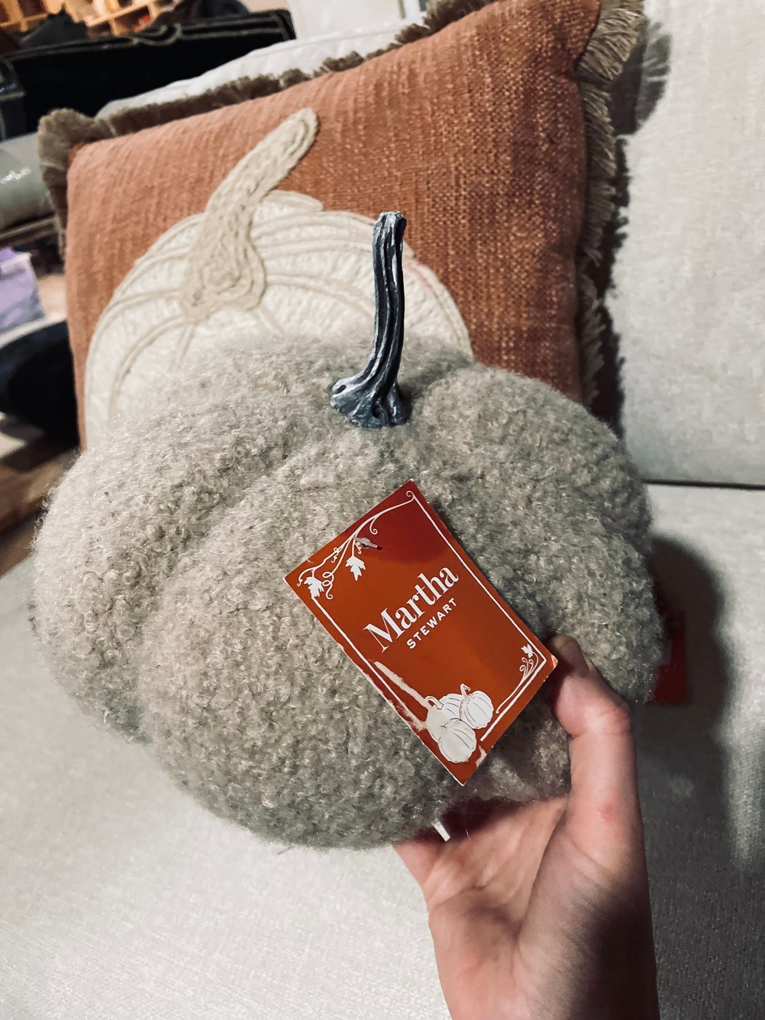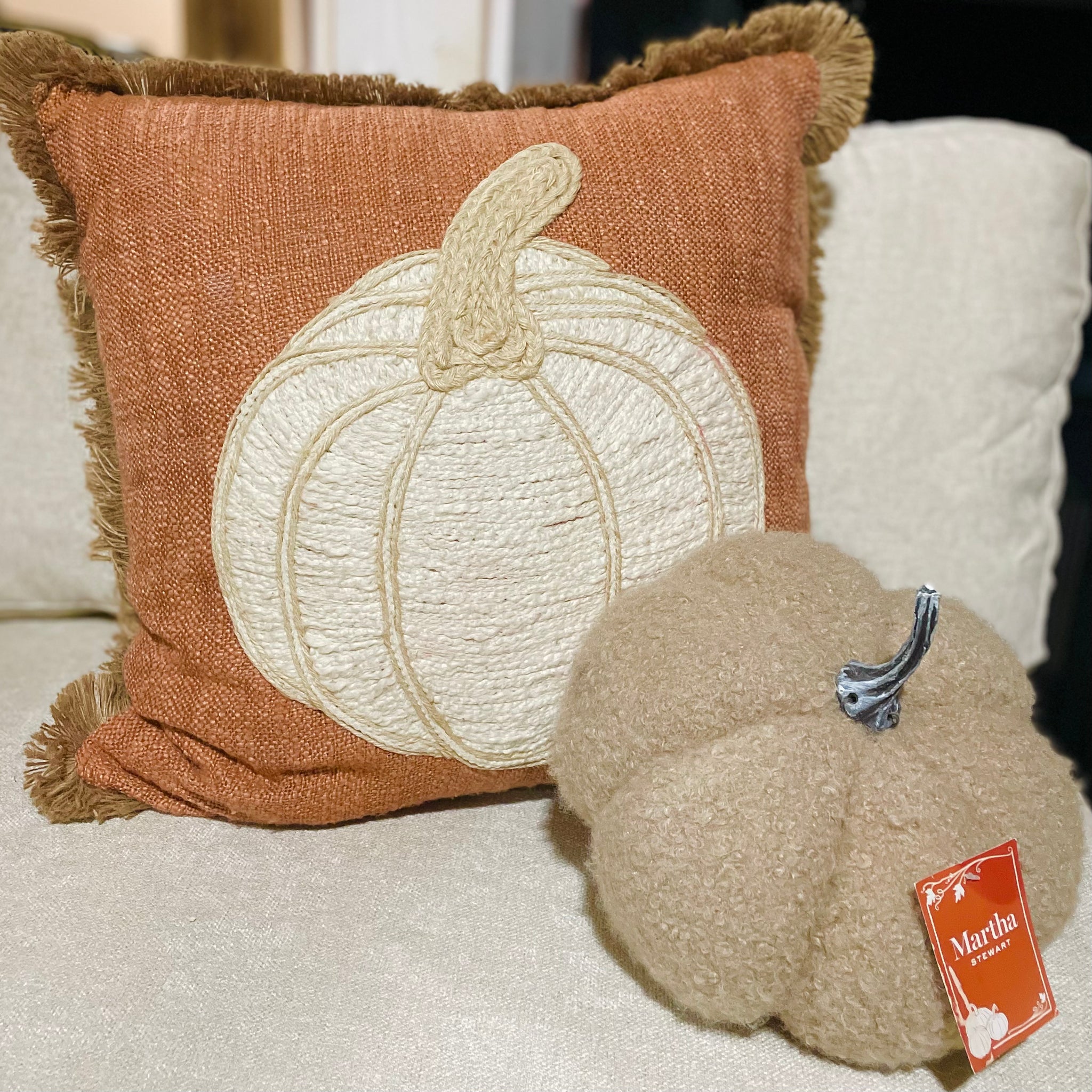 Pumpkin shaped pillow by Martha Stewart. Light brown 10 inch