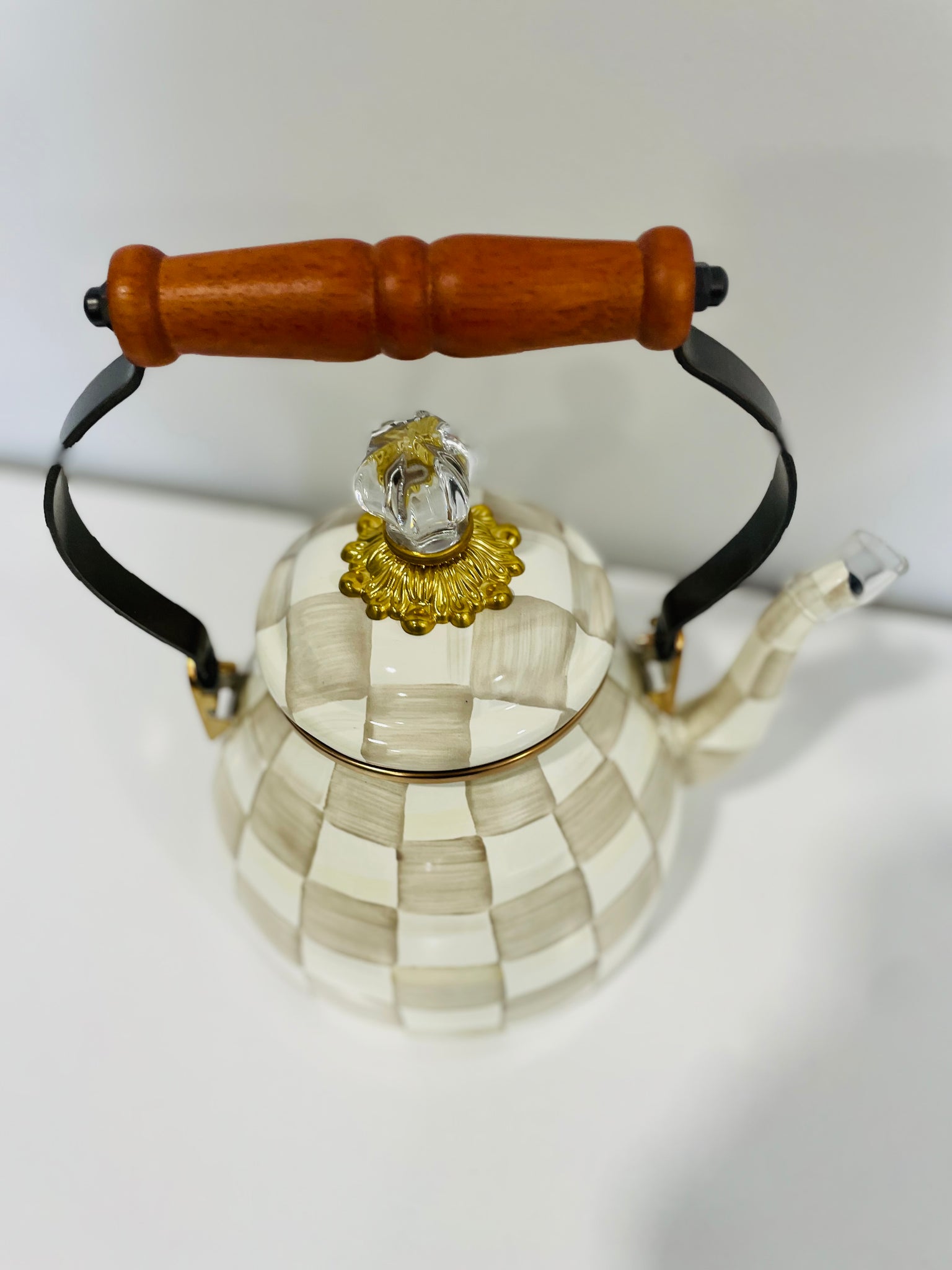 MacKenzie-Childs Hand-Decorated Enamel Tea Kettle, 2 QT MOCHA CHECK