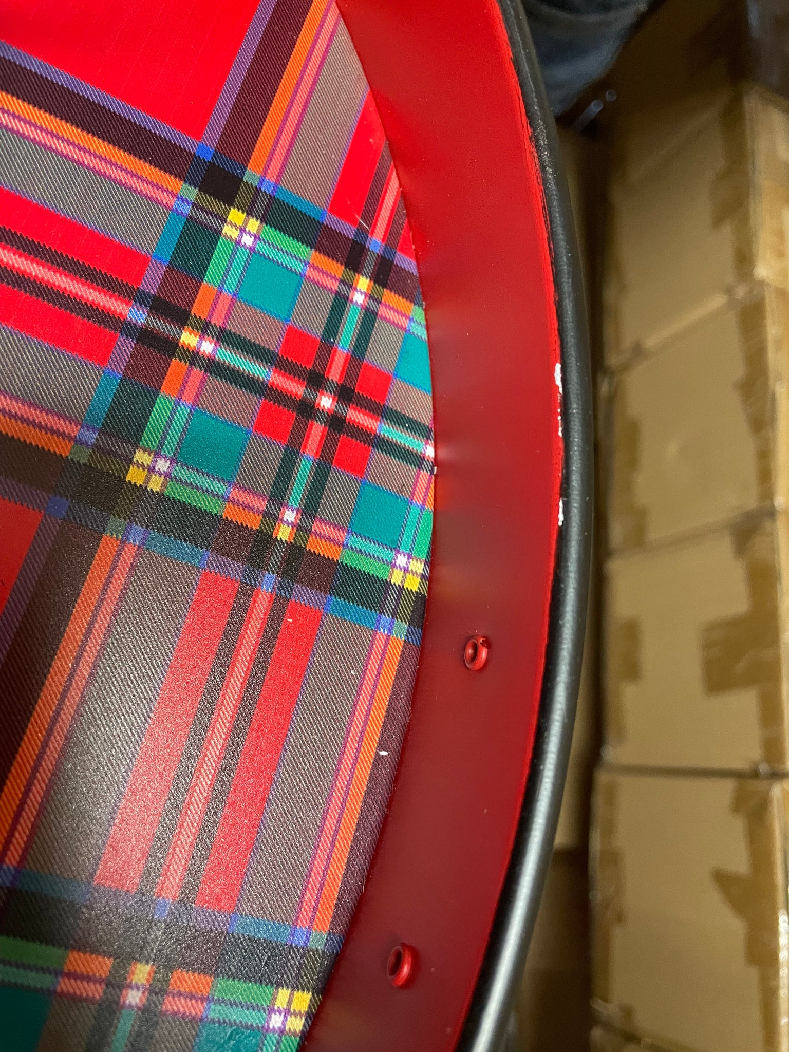 This set of two serving trays, decorated with decaled red tartan and our distinctive logo plate, is the ideal traditional touch for the holidays. These are made of galvanized metal with brass logo plates. Please note, these pieces may vary due to the