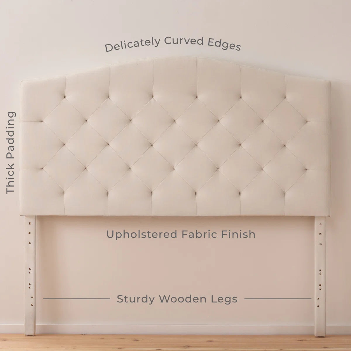 Beautiful curved edge upholstered headboard with buttonless diamond tufting.