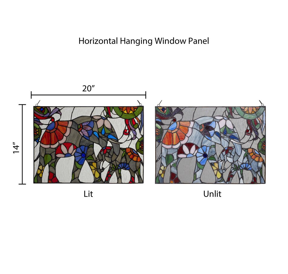 • Tiffany Style 20" Mother and Baby Elephant Stained Glass Window Panel