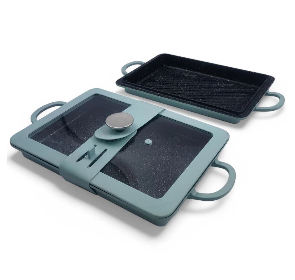 Add a multitude of delicious possibilities to your kitchen with this baker griddle and grill set from Curtis Stone. It's crafted from cast aluminum with stainless steel rectangular base which provides even heating across all pan surfaces, and the specially formulated five-layer diamond non-stick coating adds strength and durability. The tempered glass lid has a silicone rim and allows you to keep an eye on your food without losing moisture, and the silicone pot lid holder lets you cook at home and carry to your next party with ease. The pan is also oven safe up to 450°F (the lid up to 400°F), safe for use with metal utensils, and works with all stovetops, including induction. Easy to use and maintain, this baker griddle and grill is a great addition for both beginners and culinary experts alike, and it's available at a great value through TSC!