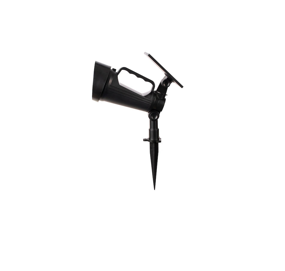 Illuminate your outdoor area with this dual use high-powered solar black plastic spotlight & flashlight. This spotlight delivers 50 lumens on low and 150 lumens on high for your lighting needs. This spotlight is easy to install for landscape lighting with no wiring required. It is powered by one rechargeable Lithium battery. Create an outdoor ambiance, ideal for your driveway, garden, pathway, campsite, or flower beds.