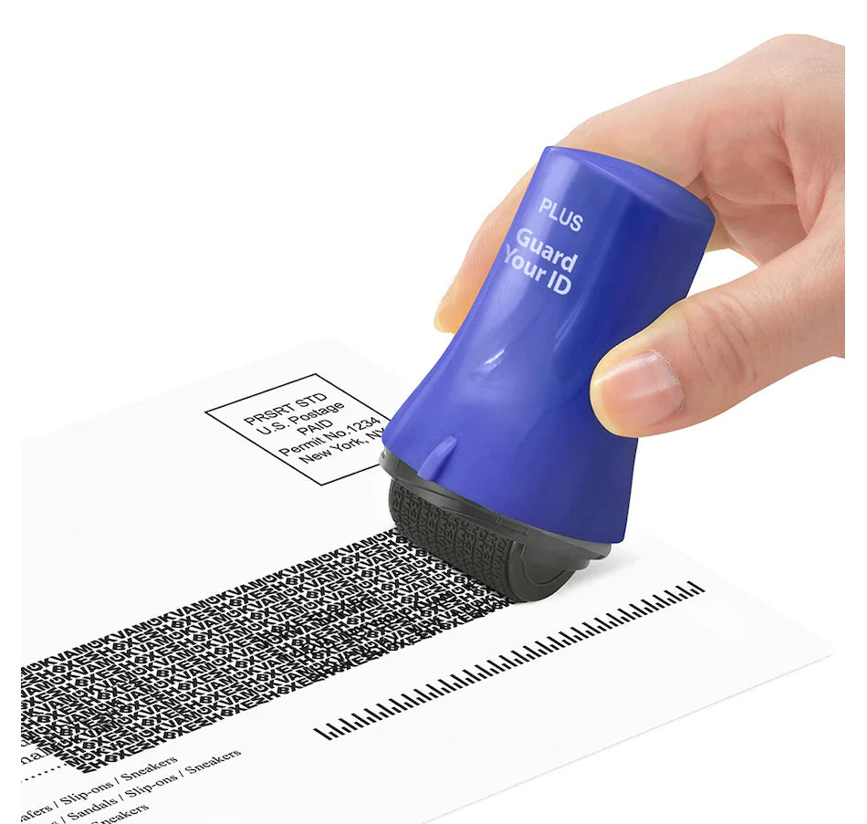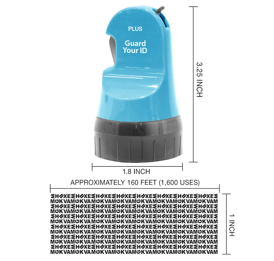 This set of three Guard Your ID rollers offer protection against identity thieves and other bad actors looking to take advantage of you and your sensitive information. By simply rolling the stamp over the text you want to mask, you can feel confident that your private information is safe from prying eyes. Unlike shredded paper, stamped documents are recyclable, making Guard Your ID a perfect alternative to a shredder. The stamps are also fast, portable, quiet and mess-free, and perfect for use on items such as prescription bottles, bills, bank statements, credit-card offers, tax returns, cashed checks, shipping labels and much more.