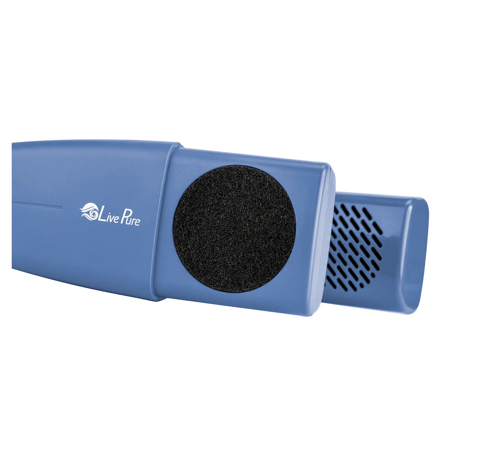 This portable, wearable fan/air cleaner has four convenient speeds (low, medium, high and turbo) and features four coconut carbon pre-filters, which trap larger airborne particles such as dust, pet hair and dander are trapped. Clean air is then circulated around you. The airflow is directed inward at the neck (an area that drives bodily heating/cooling) as opposed to, say, just blowing air past the eyes and drying them out.