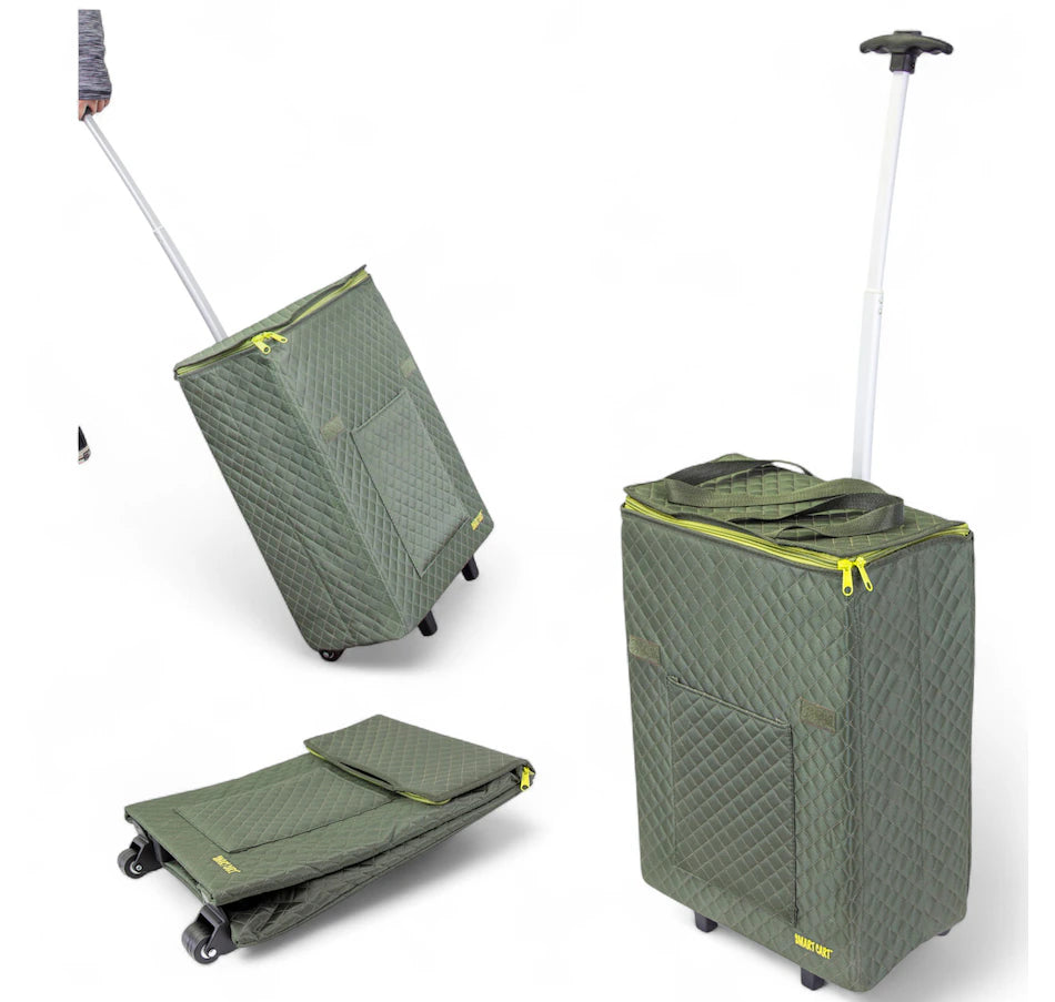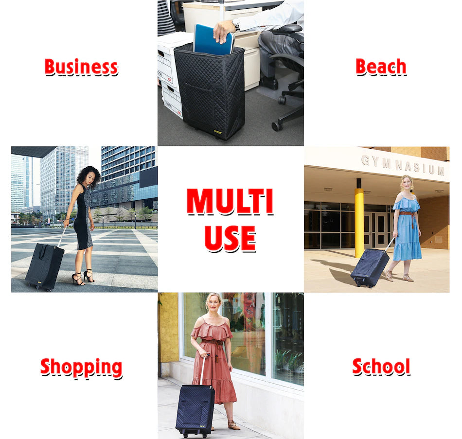 The Smart Cart shopper tote from dbest is your go to rolling cart to carry all your items in style! Stitched with a high quality quilted material, it gives this foldable cart a touch of sophistication. It has a patented non-slip telescoping