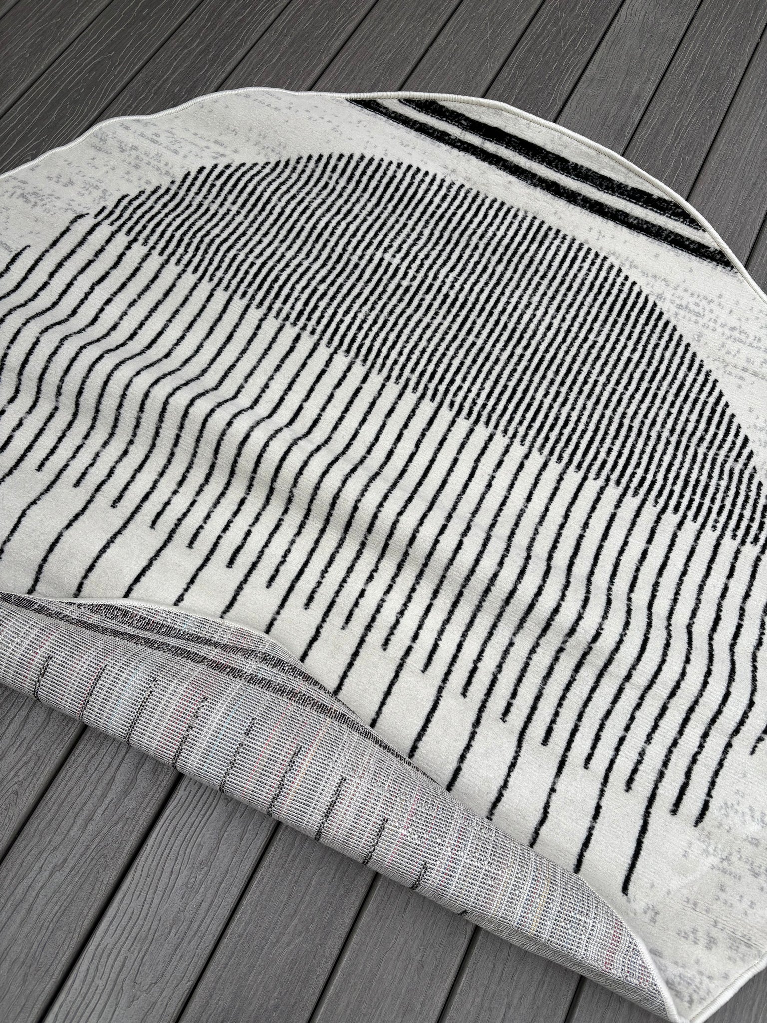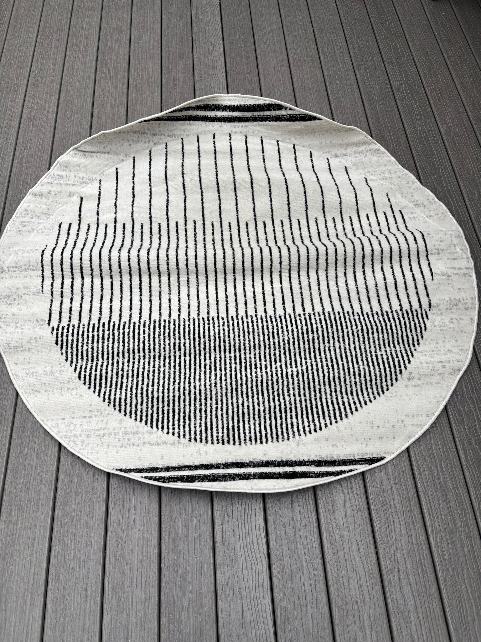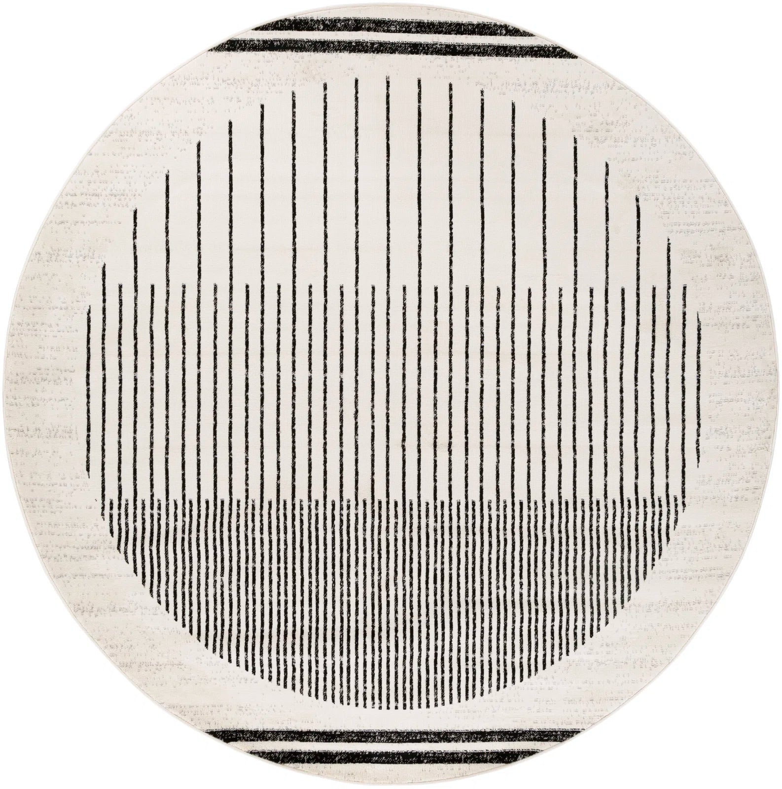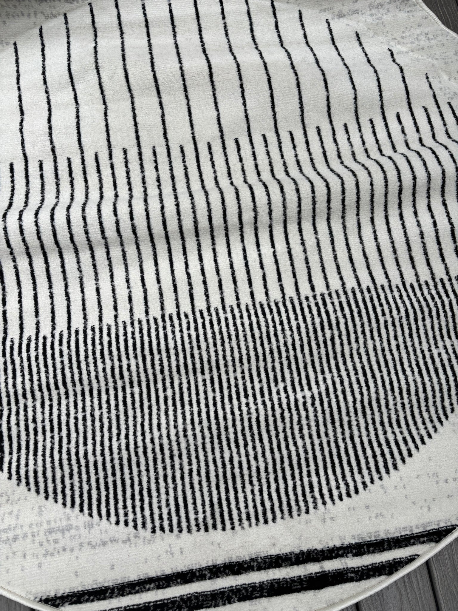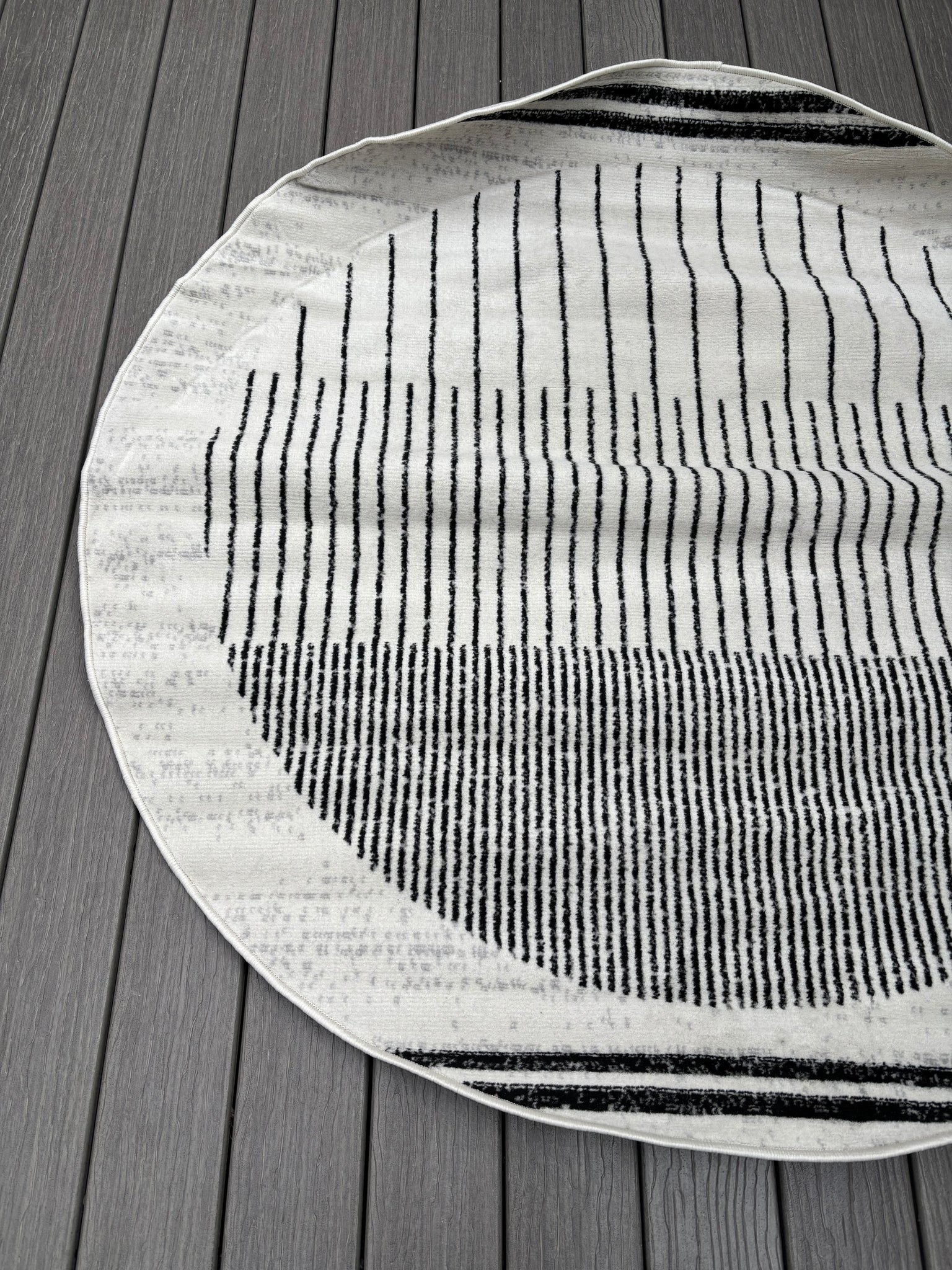 5'3" ROUND Corum Abstract Black/Ivory Area Rug