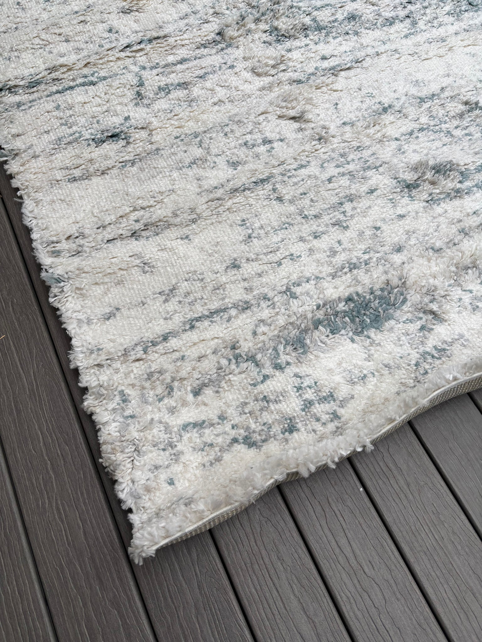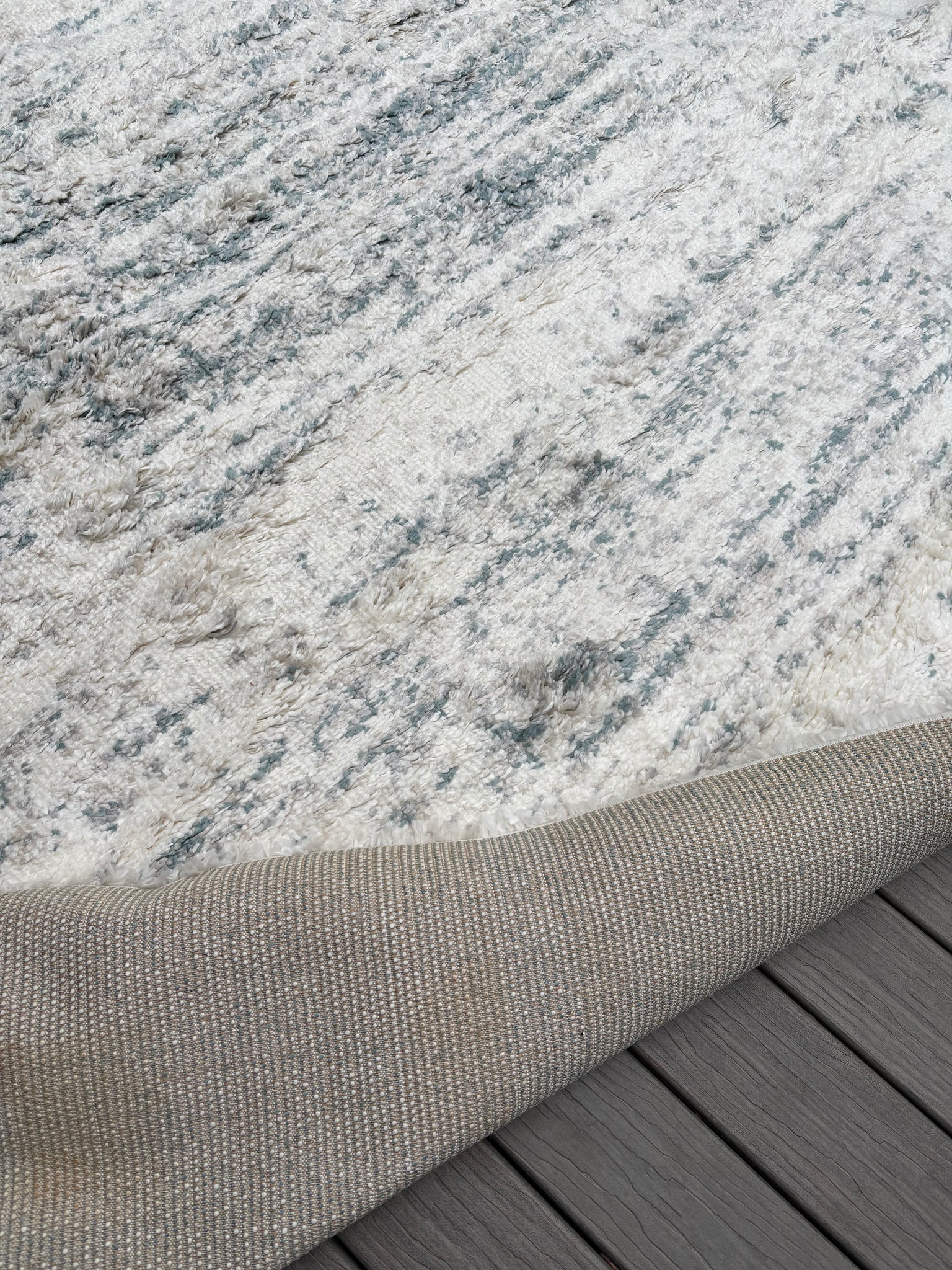 This indoor area rug features a textured surface in ivory tones with subtle streaks of muted grey to give your floors a faded, vintage-inspired look. It's power-loomed with polypropylene — and it has cotton, jute, and canvas backing for added protection. A super-high pile height of 1.97" means it's ideal for low-traffic spaces in your home, such as your bedroom or den. This rug is also safe to roll out on heated floors. Even though this rug has a backing, we recommend pairing it with a rug pad to keep everything from moving around.