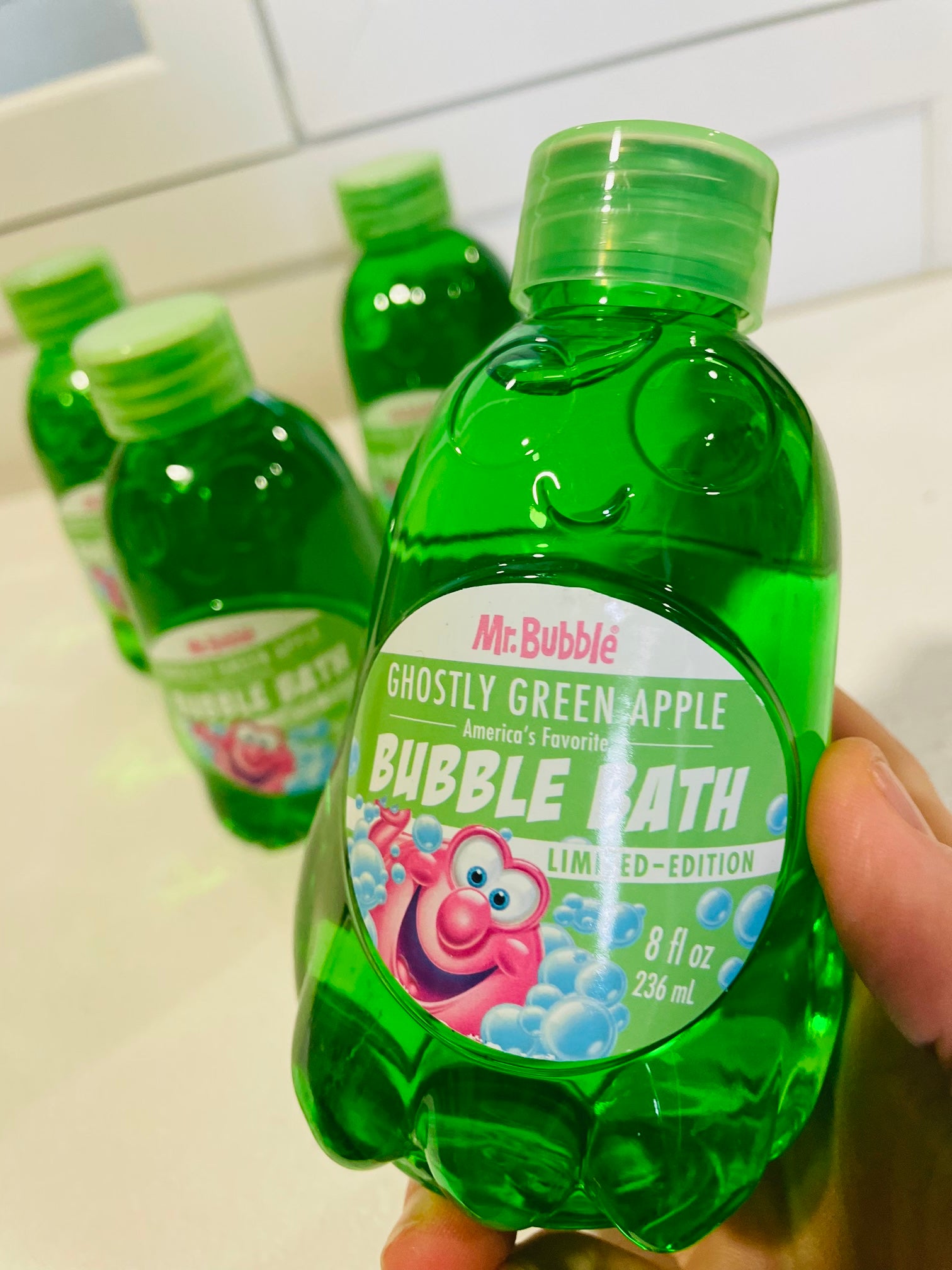 Mr. Bubble Ghostly Green Apple Bubble Bath comes in a spooky-cute ghost-shaped bottle with a crisp green apple scent. Add to bath time for foamy, fun bubbles that kids can’t resist. Limited edition and hauntingly delightful!