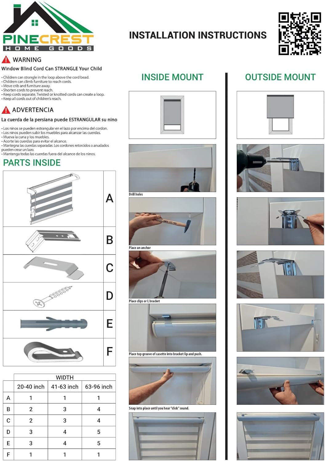 【Child-Safe Zebra Blinds with Certified Safety Features】 Pinecrest Home Goods zebra roller shades include a built-in tension device that secures cords to the wall, reducing risks for kids and pets. These blinds for indoor windows meet child safety standards, making them perfect window blinds for home, nurseries, playrooms, and family spaces. Durable and stylish, our light filtering roller shades provide peace of mind and safe everyday use.